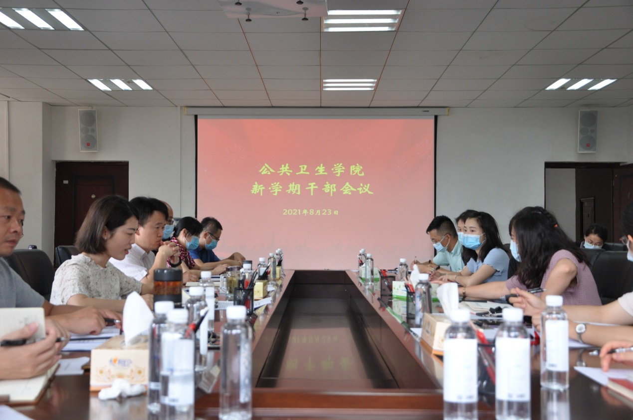 8月23日,公共卫生学院在博雅楼二楼会议室召开新学期工作会议。学院党政领导班子成员、环境污染与疾病监控教育部重点实验室负责人、化学品毒性检测中心负责人、卫生发展研究院负责人、副科级以上干部、各党支部书记、教工党支部委员、全体辅导员参会,会议由党委书记郑维薇主持。
