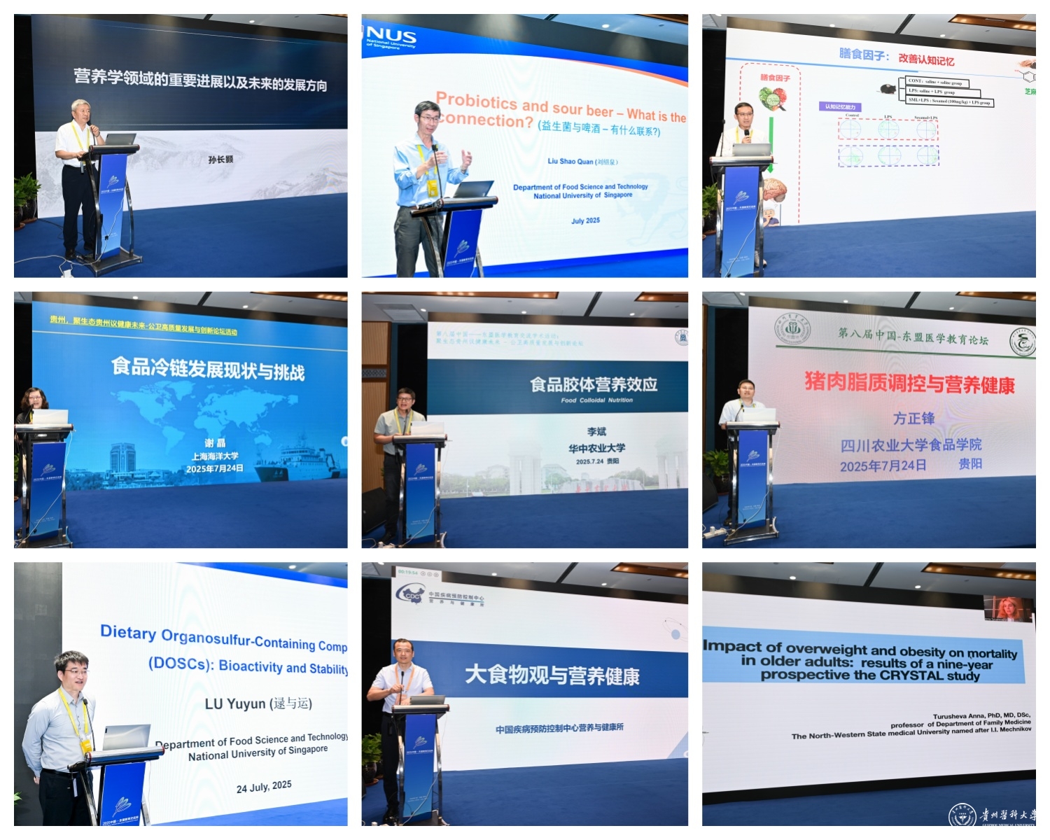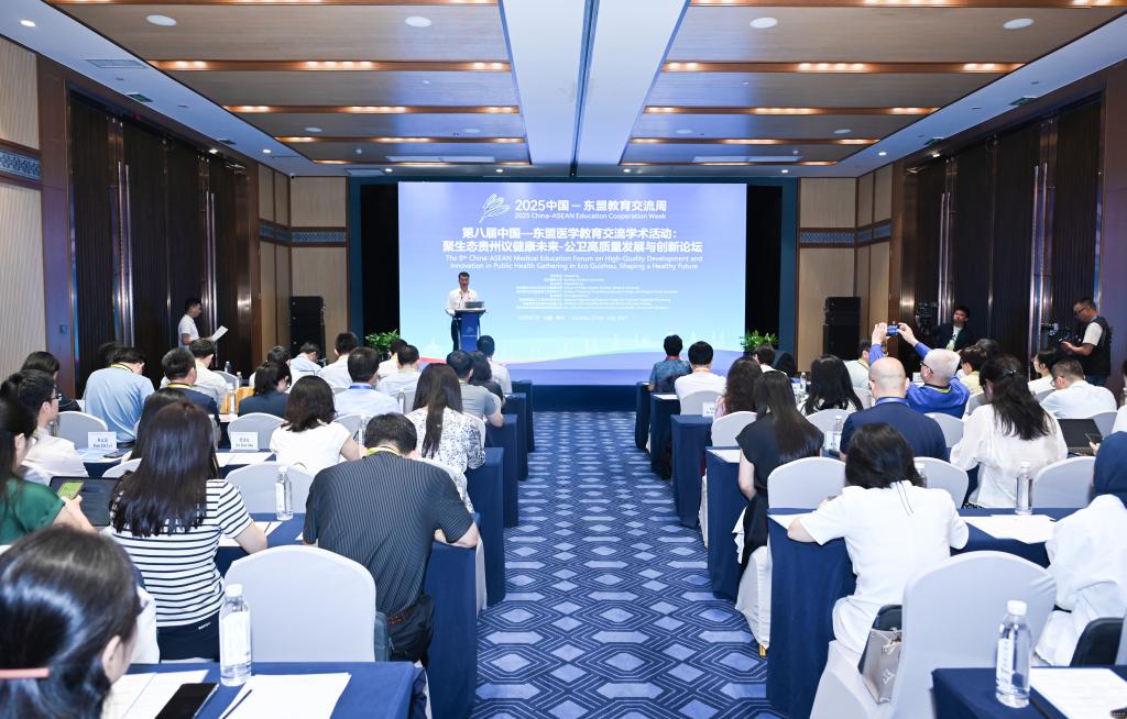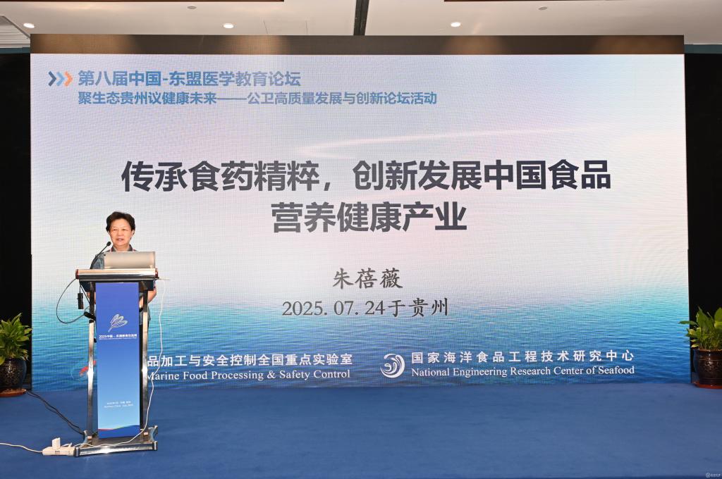 7月24日,第八届中国-东盟医学教育论坛:聚生态贵州议健康未来-公卫高质量发展与创新论坛在贵阳东盟教育交流周永久会址二楼松柏山厅举行。中国工程院院士、海洋食品加工与安全控制全国重点实验室主任朱蓓薇出席论坛并作主旨报告。我校党委书记汤磊出席论坛并致欢迎辞;校党委副书记、校长罗鹏主持论坛。南开大学特聘教授王硕、原哈尔滨医科大学副校长/精准营养与健康教育部重点实验室主任孙长颢、中国疾病预防控制中心营养与健康所所长刘爱东、新加坡国立大学教授刘绍泉、西北农林科技大学校长助理兼深圳研究院院长刘学波、中国农业大学国家果蔬加工工程技术研究中心执行主任陈芳、上海海洋大学食品学院院长谢晶、南京医科大学公共卫生学院院长王建明、华中农业大学研究生院常务副院长李斌、四川农业大学食品学院院长方正锋、四川大学发展规划处副处长成果、俄罗斯西北国立医科大学教授Anna Turushev安娜·图鲁舍娃、上海交通大学研究生院副院长李晓光等国内外10余所高等院校和科研机构的专家学者、青年才俊,以及贵州医科大学公共卫生与食品科学领域教师和部分留学生参加论坛。