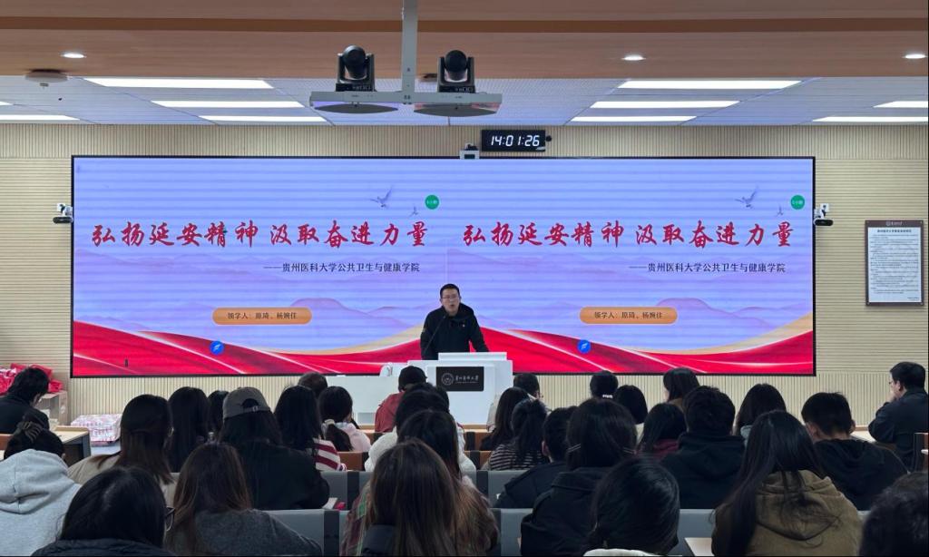 10月24日下午,公共卫生与健康学院在云漫湖校区公卫组团L111S智慧教室开展《习近平谈治国理政》第五卷主题宣讲。学院学生第二党支部原琦、杨婉佳同志作为主讲人,各党支部师生代表约150人参加了本次活动。此次宣讲结合习近平总书记关于“继承和发扬党的优良革命传统和作风,弘扬延安精神”的重要论述,用“小切口”阐述“大道理”,引导师生从学习延安精神中汲取养分,实现“精神传承与专业赋能”的双重目标。