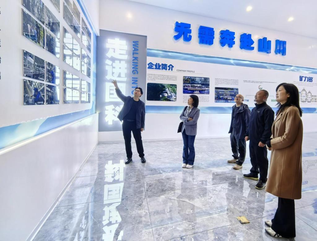 企业电商部运营总监王智聪对学院一行表示欢迎,陪同参观了国科文化展厅与矿泉水生产车间,并就企业发展历程、生产运营及企业文化作了详细介绍。